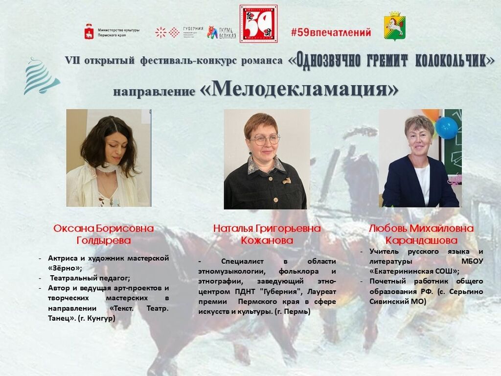 Экспертное жюри VII открытого фестиваля-конкурса романса "Однозвучно гремит колокольчик"