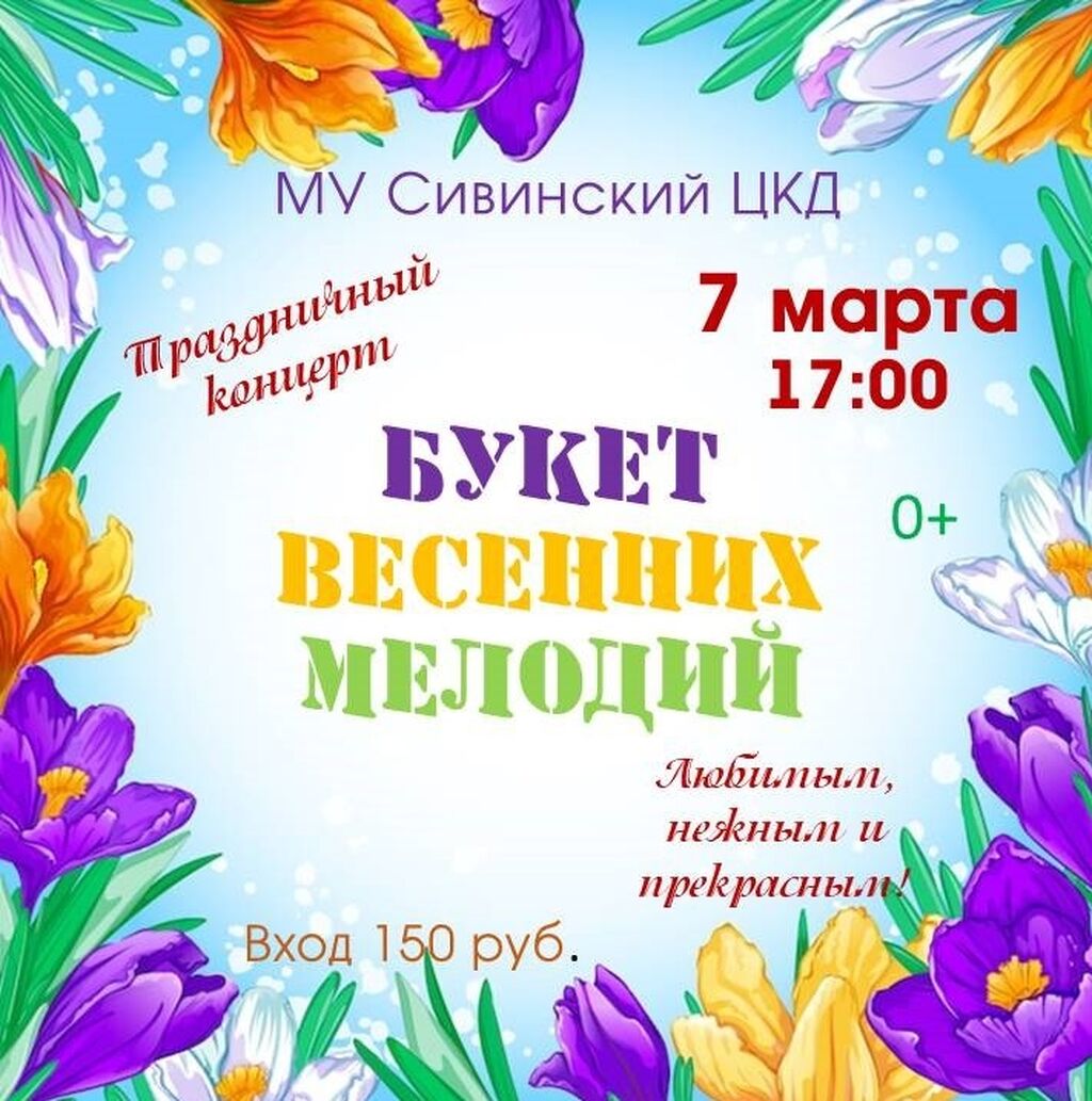 Приглашаем вас на чудесный праздничный концерт «БУКЕТ ВЕСЕННИХ МЕЛОДИЙ», посвящённый Международному женскому дню!