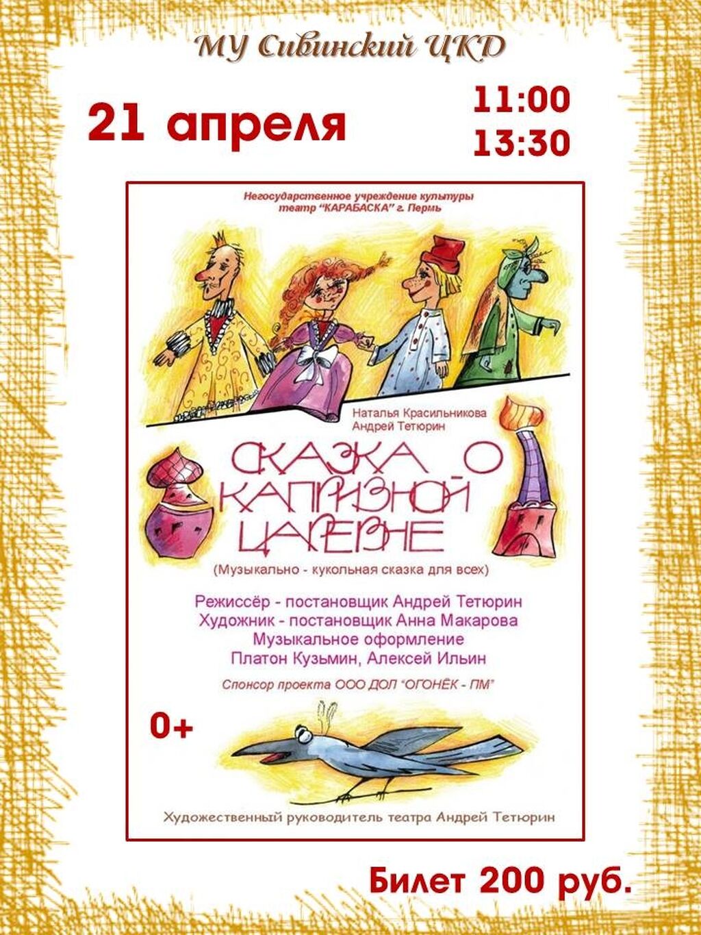 Дорогие друзья! Приглашаем на спектакль "Сказка о капризной царевне"!